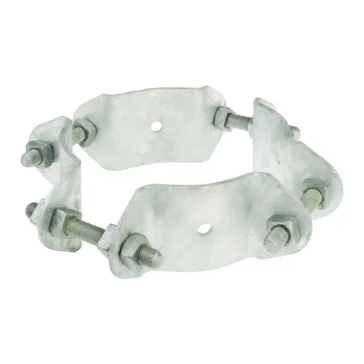4-way, adjustable pole band for pole guys and insulator attachment. Band segments are 1/4″ x 4″ steel and connecting bolt size is 3/4″ x 6″. Band is shipped unassembled. Connecting links and rollers are ordered seperately.
