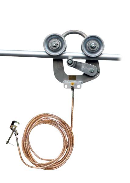 Running earthing devices to be used while stringing overhead conductors or pulling ropes.